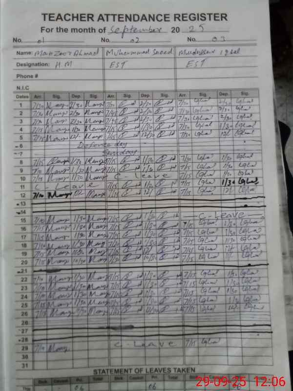 | Name: Ma**** Designation: (School Headmaster's/Headmistress's) SST Phone/Cell Number: 03**** |