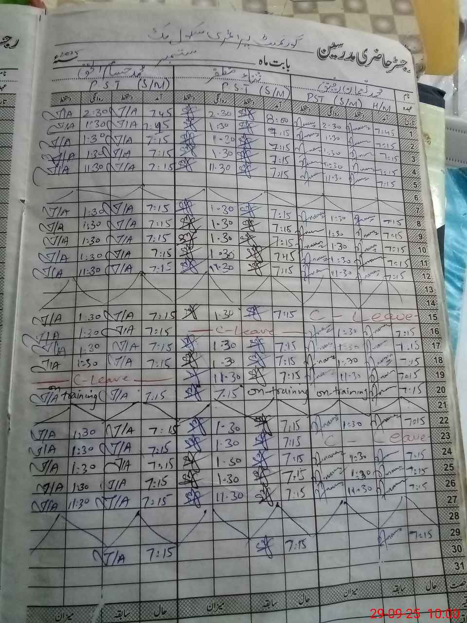 | CNIC | Full Name | Designation | R/C | Absence During Last Calender Month |