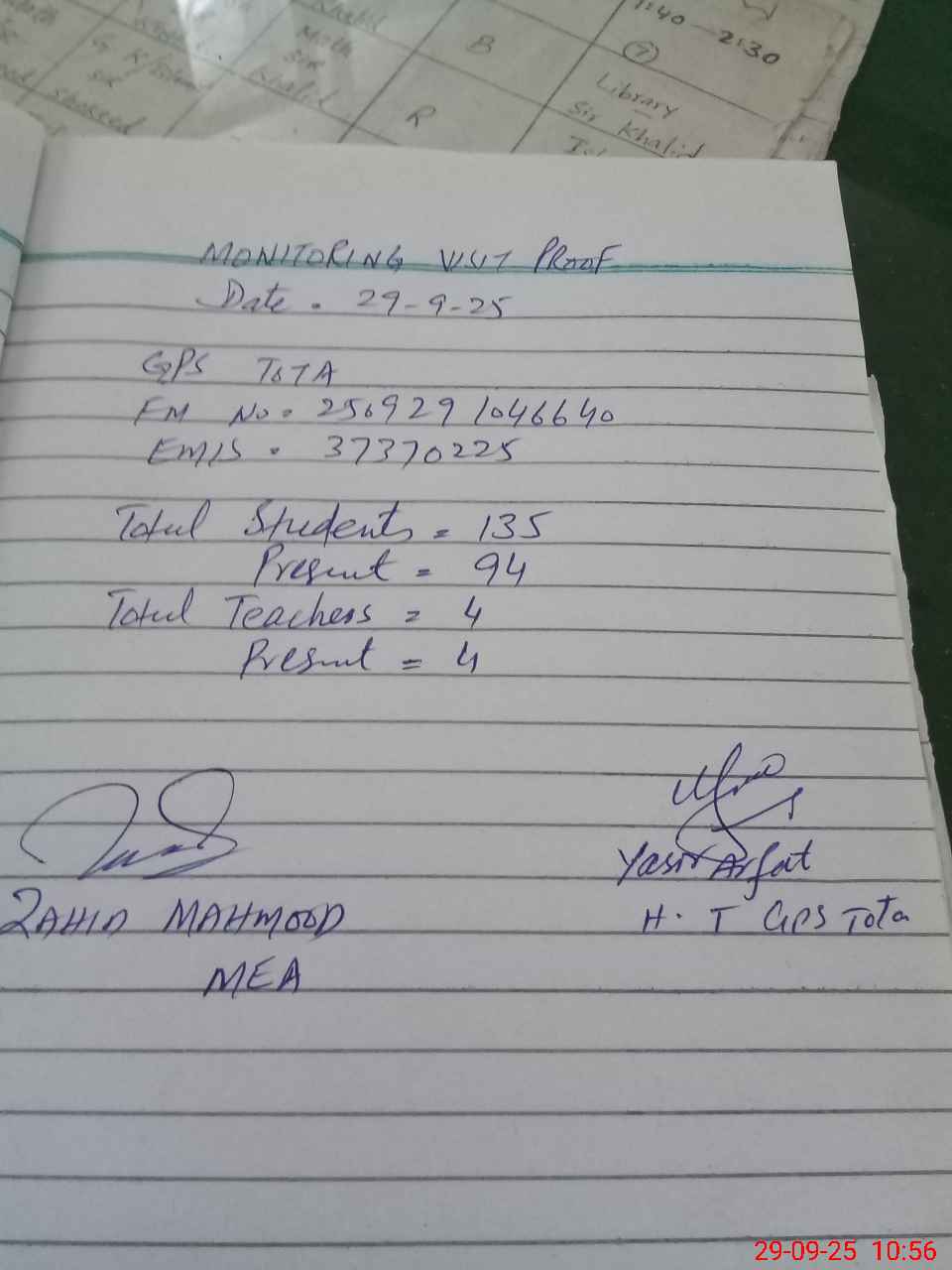 | EMIS Code: 37370225 | Name of School: GPS TOTA | |||