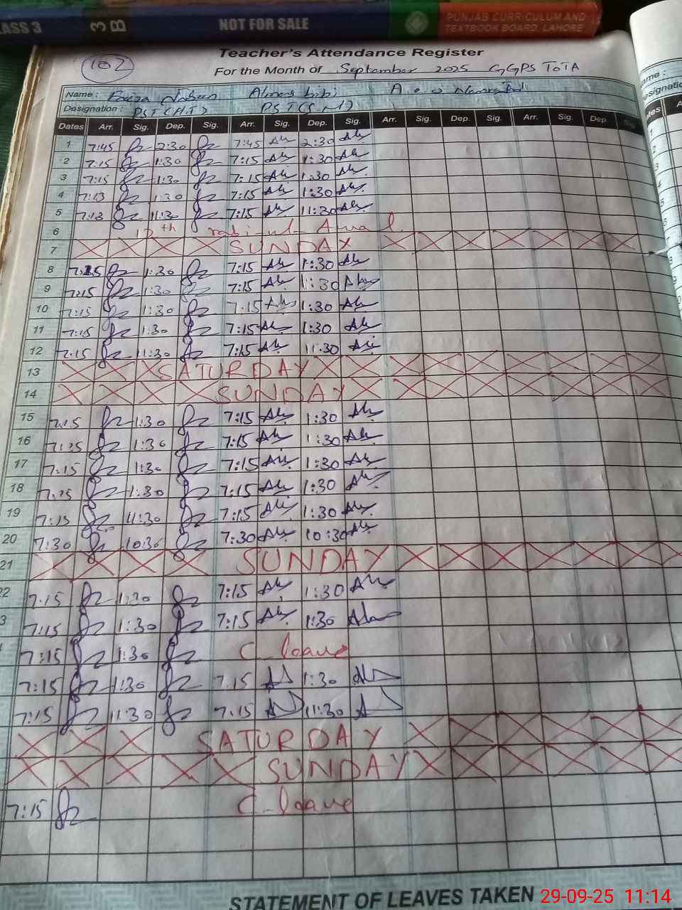 | Name: Fa**** Ja**** Designation: (School Headmaster's/Headmistress's) PST Phone/Cell Number: 03**** |