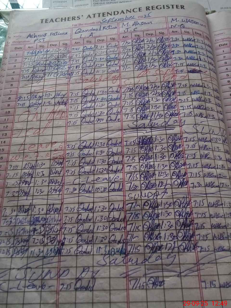 | CNIC | Full Name | Designation | R/C | Absence During Last Calender Month |