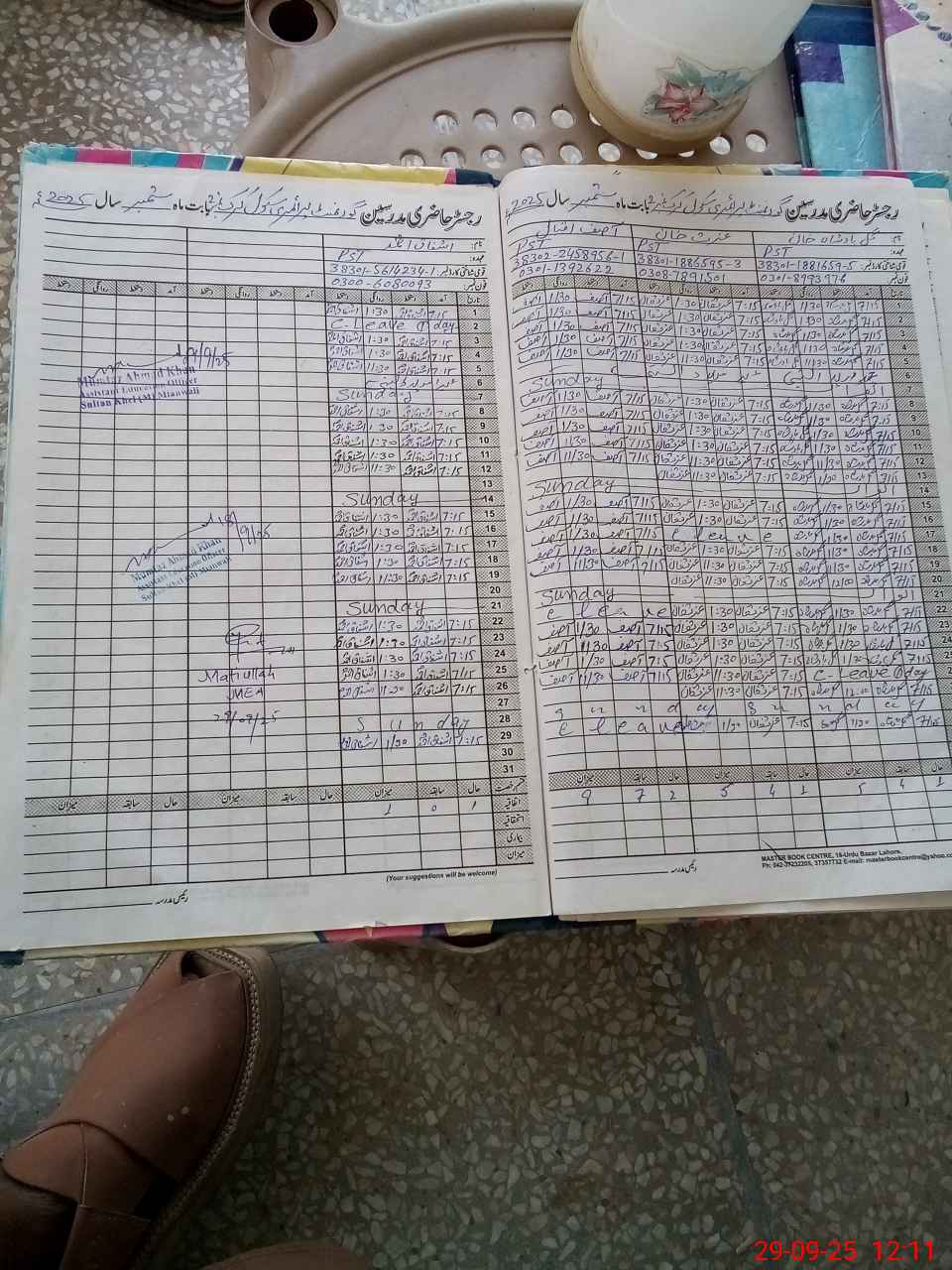 | CNIC | Full Name | Designation | R/C | Absence During Last Calender Month |