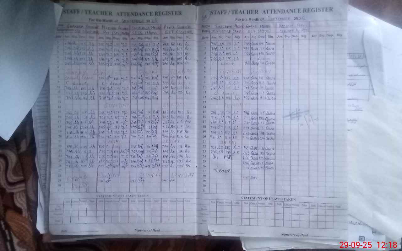 | 13**** | Sh**** Gh**** | SST | Regular | 0 | 0 | 0 | 0 | 0 | 0 | 0 | 0 | 0 | Exam Duty |