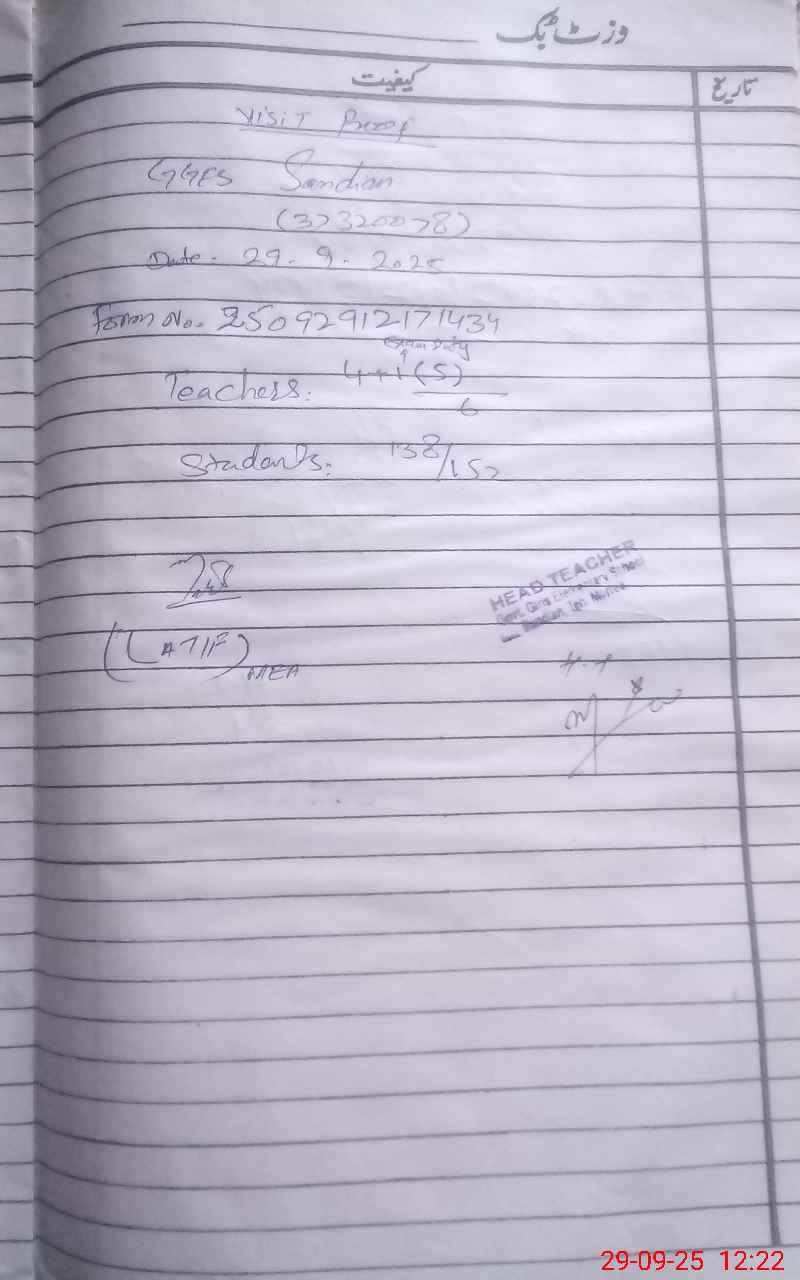 | Name: Sh**** Gh**** Designation: (School Headmaster's/Headmistress's) Sst Phone/Cell Number: 03**** |
