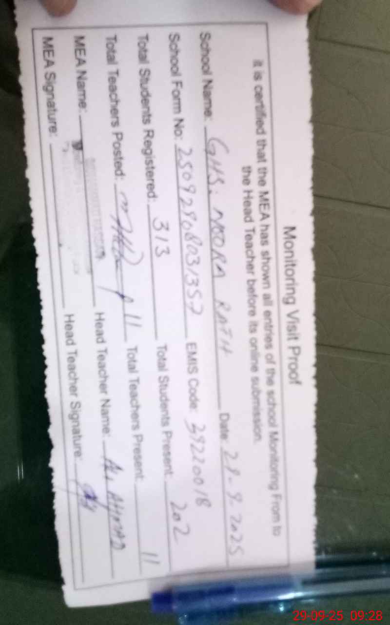 | Attendance Register | Head Teacher | MEA with School | Visit Proof |