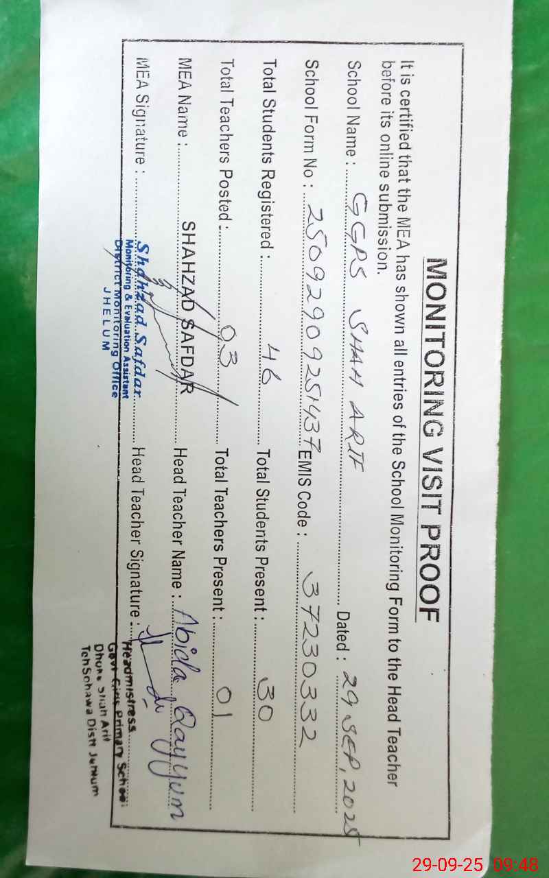 | EMIS Code: 37230332 | Name of School: GGPS SHAH ARIF | |||