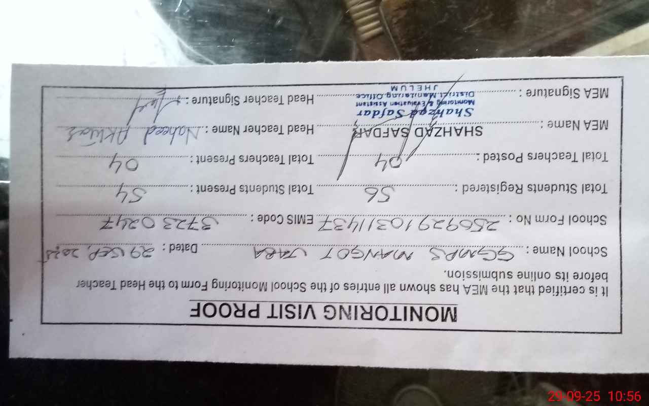 | Certified that this School was Inspected by the Undersigned MEA/DMO Today and the Information Stated Above is as Per Record. | |||||