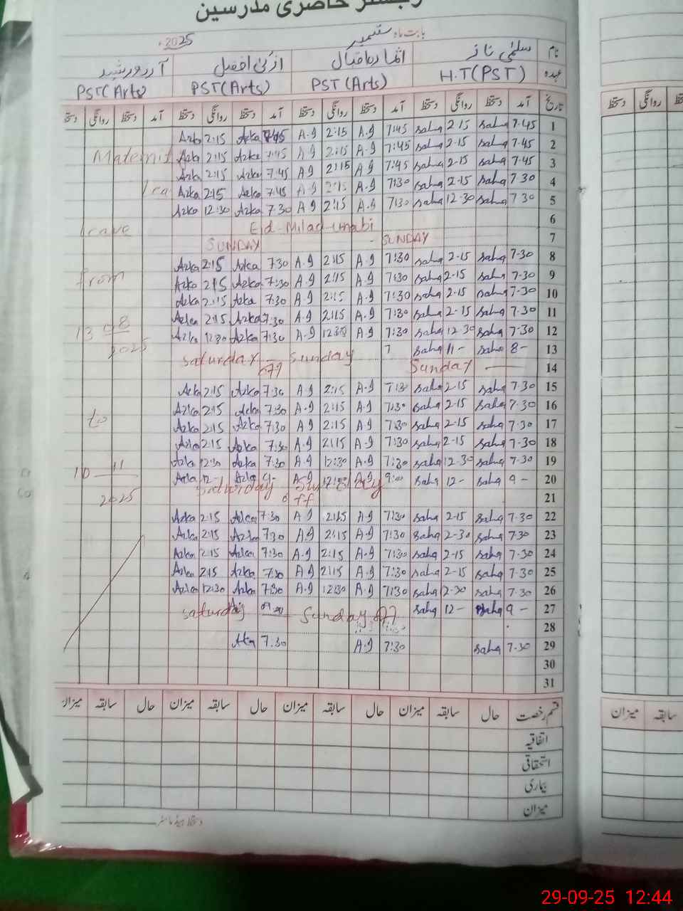 | Remarks (Use Separate Page if Required): PST Nasreen Akhtar long absent since 21 May 25 Security Guard Muhammad Zubair attached with Secretary School Education latest orders available Maintenance highly required for School toilets roof 35220287 | |||||