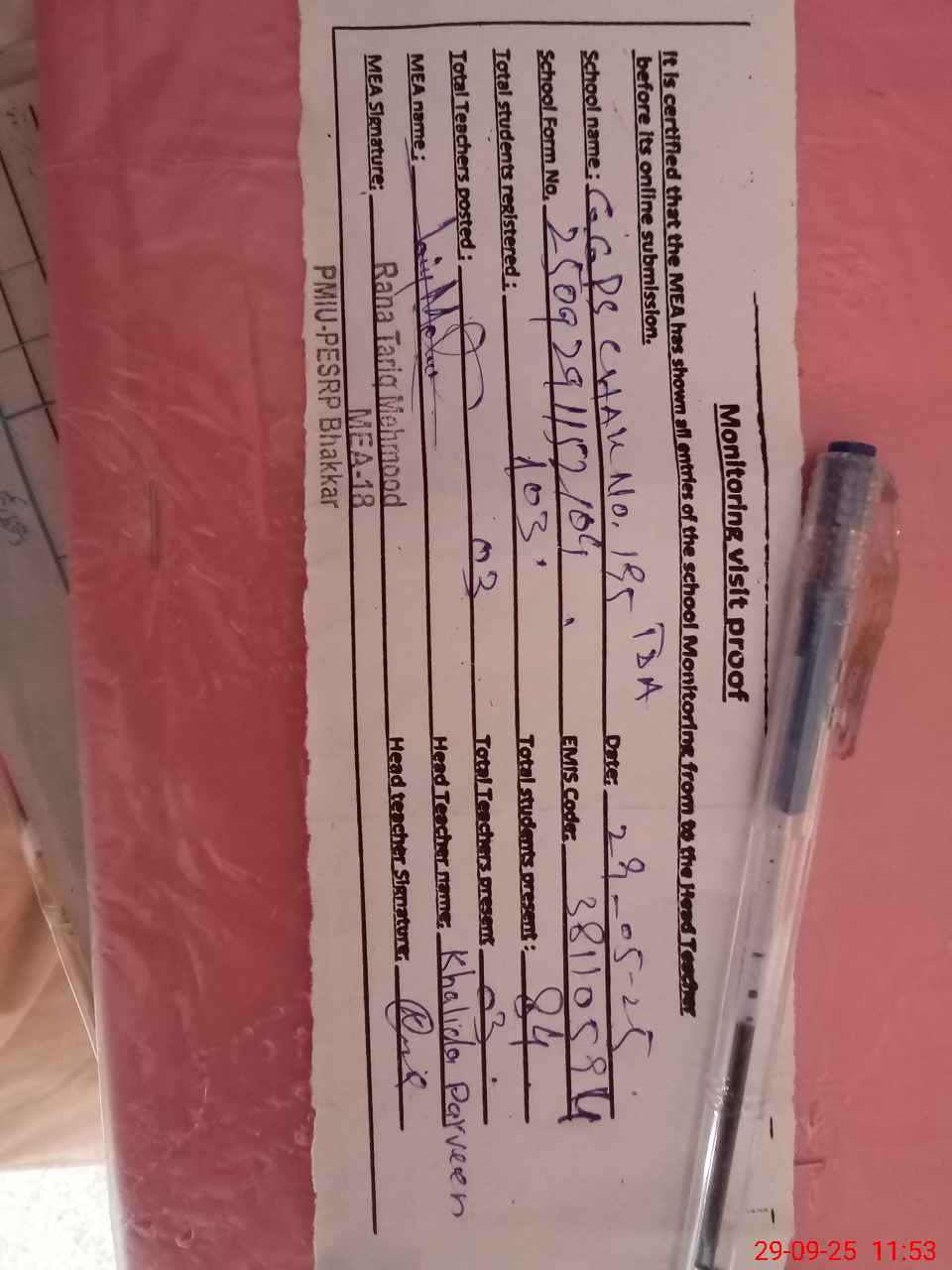 | EMIS Code: 38110594 | Name of School: GGPS CHAK NO. 195 TDA | |||