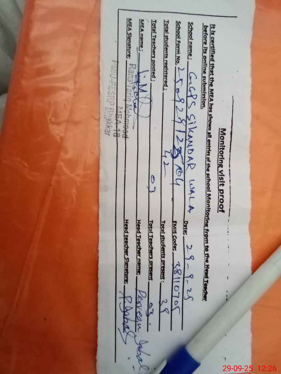 | EMIS Code: 38110705 | Name of School: GGPS SIKANDAR WALA | |||