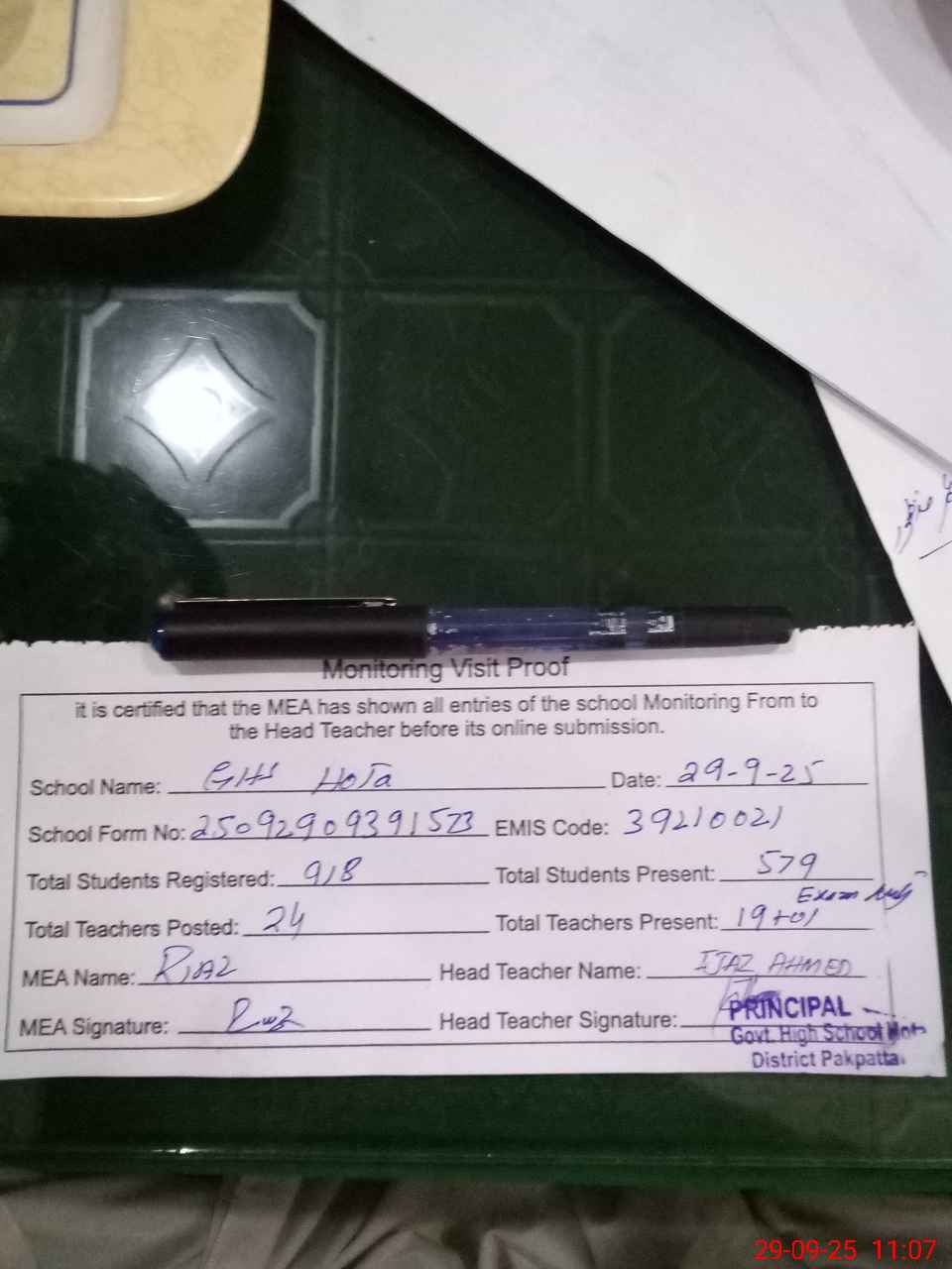 | EMIS Code: 39210021 | Name of School: GHS HOTTA | |||