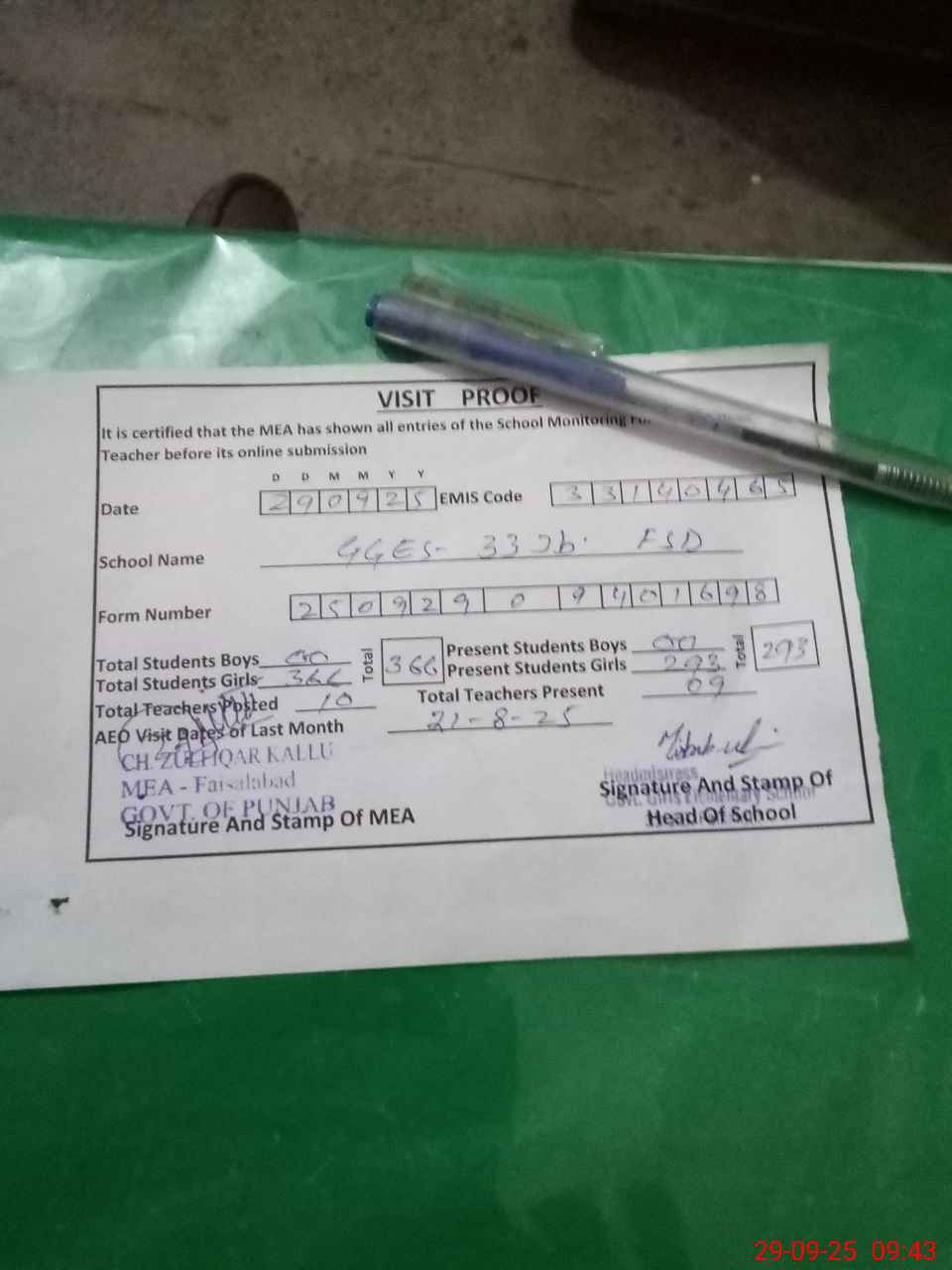 | EMIS Code: 33140465 | Name of School: GGES CHAK NO 33 JB | |||