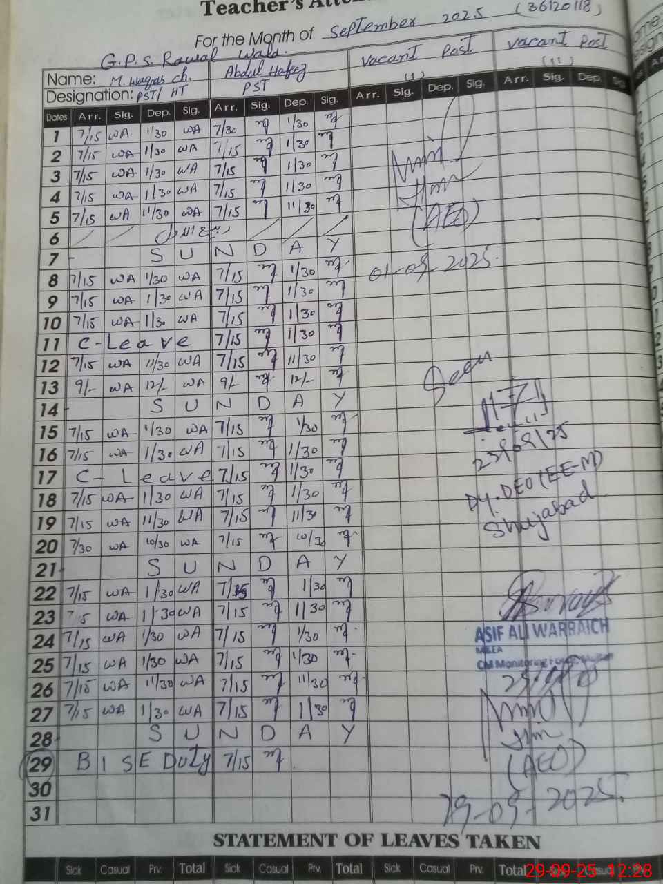 | 36**** | Mu**** Wa**** Ch**** | PST | Regular | 0 | 0 | 0 | 0 | 0 | 0 | 0 | 0 | 0 | Exam Duty |
