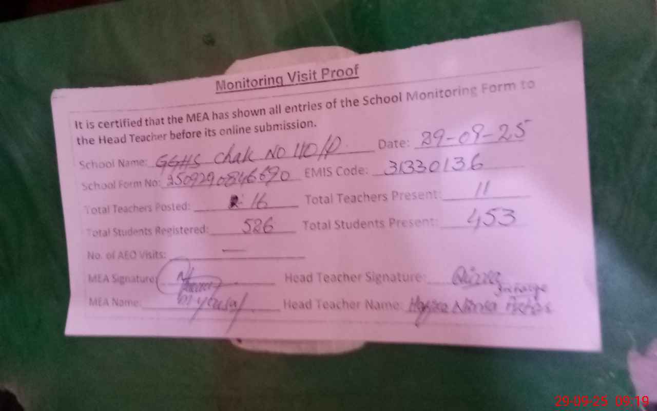 | EMIS Code: 31330136 | Name of School: GGHS CHAK NO. 110/P | |||