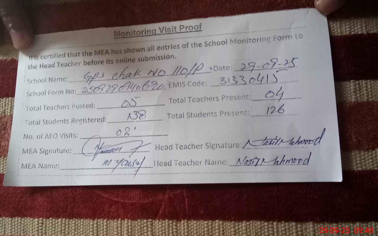 | EMIS Code: 31330415 | Name of School: GPS CHAK 110/P | |||