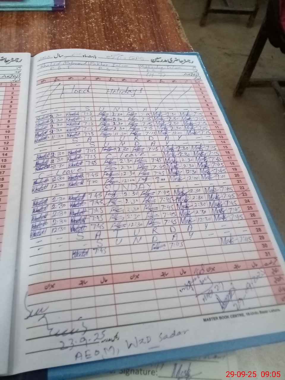 | CNIC | Full Name | Designation | R/C | Absence During Last Calender Month |