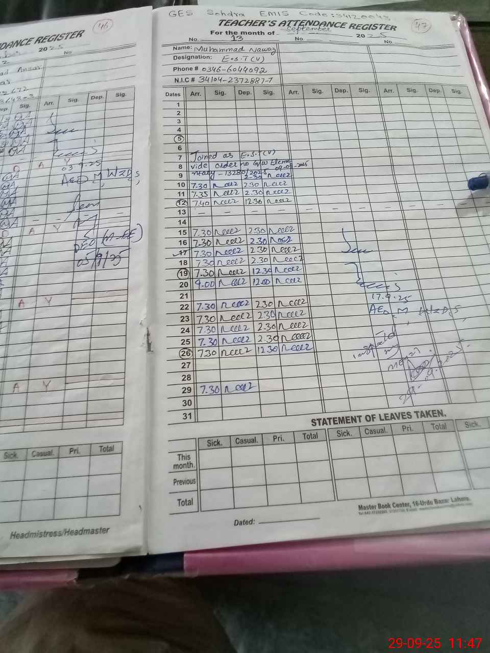 | Name: Az**** Ah**** Si**** Designation: (School Headmaster's/Headmistress's) EST English Phone/Cell Number: 03**** |