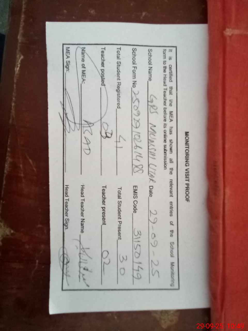 | EMIS Code: 31150149 | Name of School: GPS MUNSHI OTTAR | |||