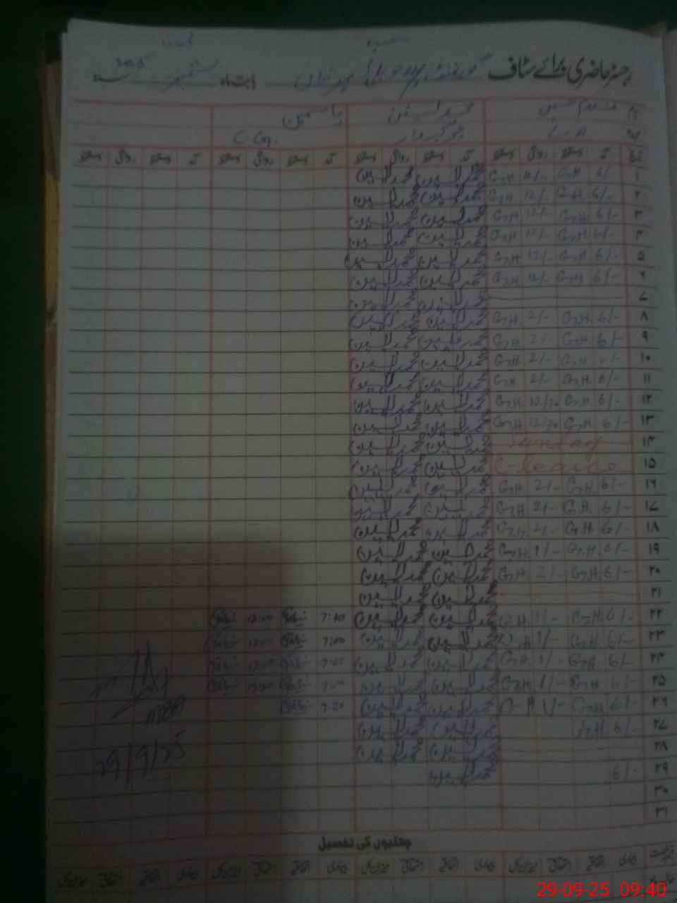 | CNIC | Full Name | Designation | R/C | Absence During Last Calender Month |