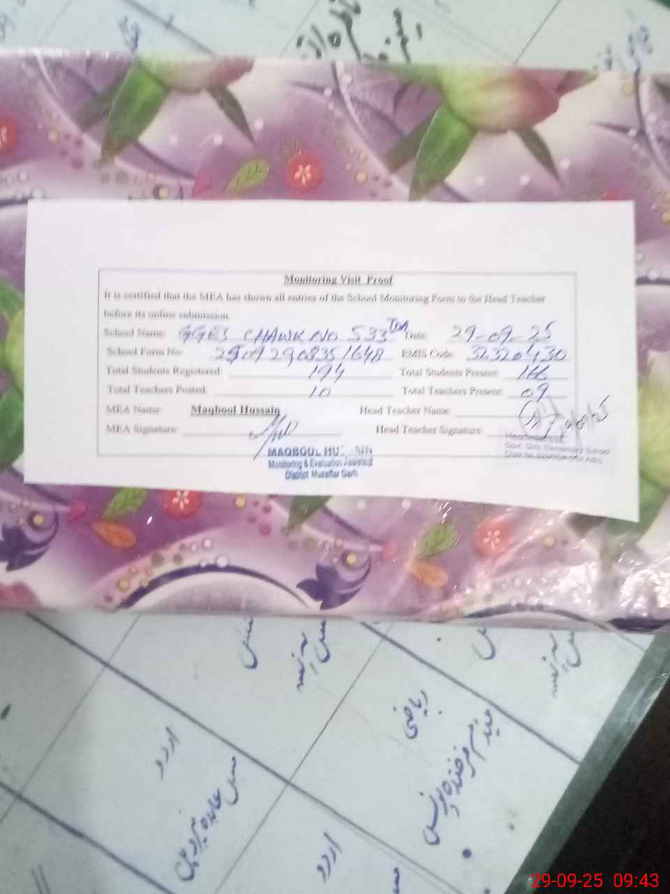 | EMIS Code: 32320430 | Name of School: GGES CHAK NO. 533 TDA | |||