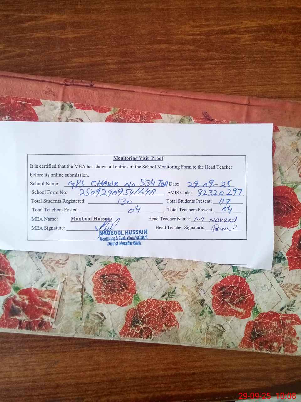 | EMIS Code: 32320297 | Name of School: GPS CHAK NO. 534/TDA | |||