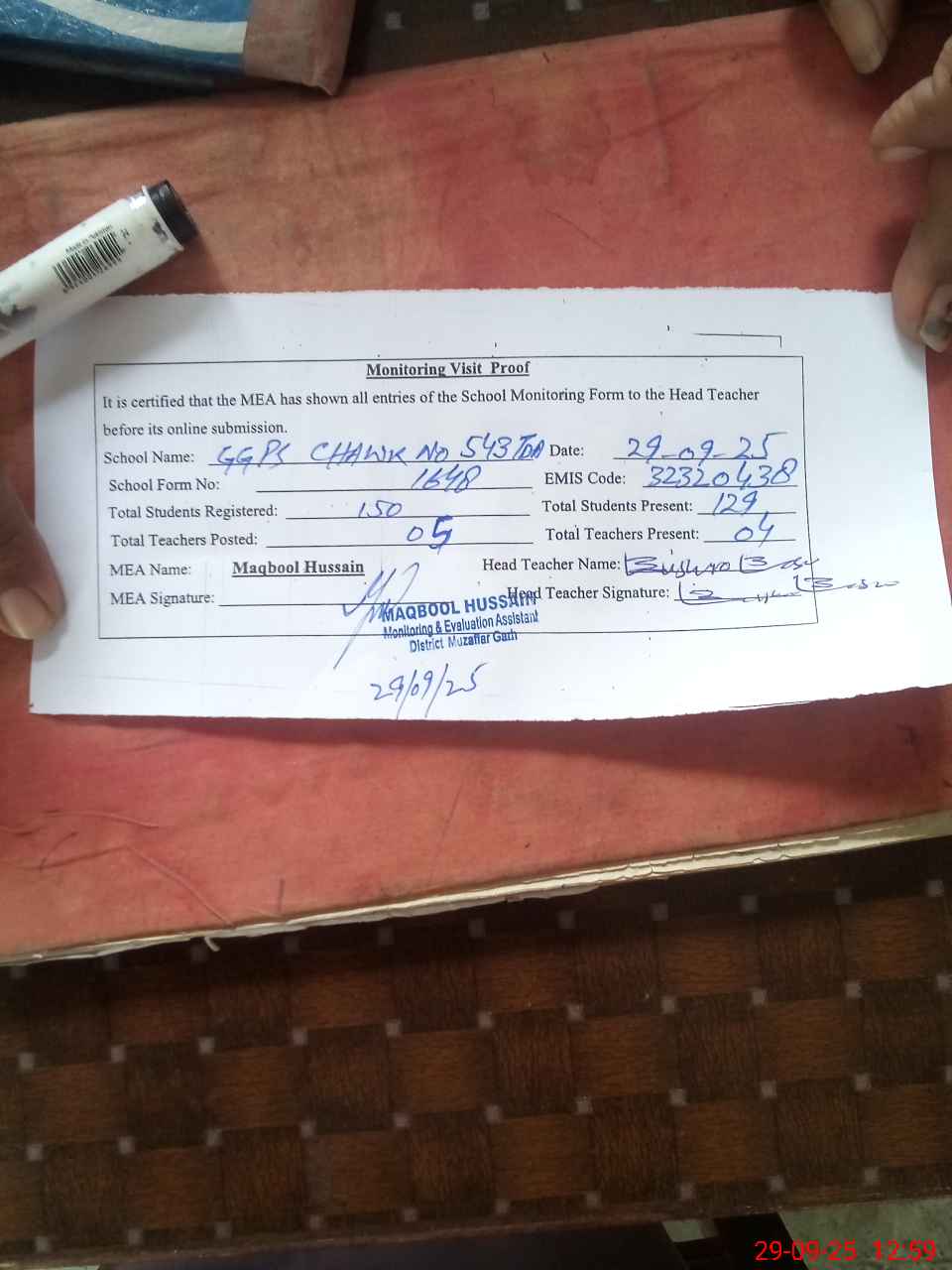 | EMIS Code: 32320438 | Name of School: GGPS CHAK NO. 543 TDA | |||