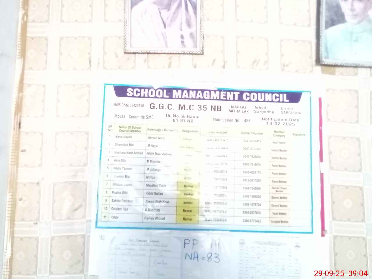 | EMIS Code: 38420610 | Name of School: GGCMS CHAK NO.35 NB | |||