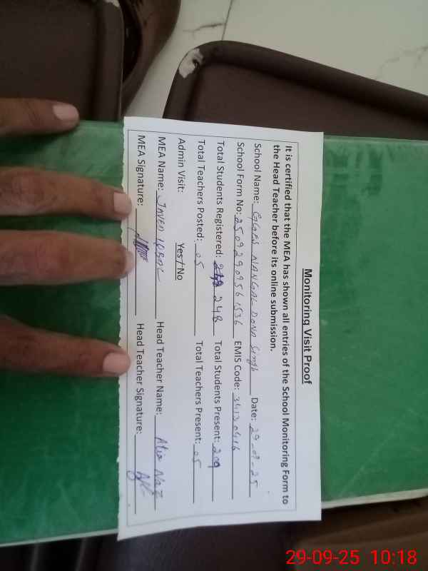 | Attendance Register | Head Teacher | MEA with School | Visit Proof |