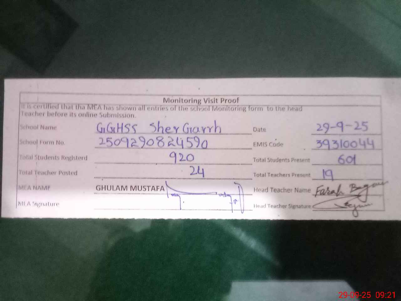 | EMIS Code: 39310044 | Name of School: GGHSS SHER GARRH | |||