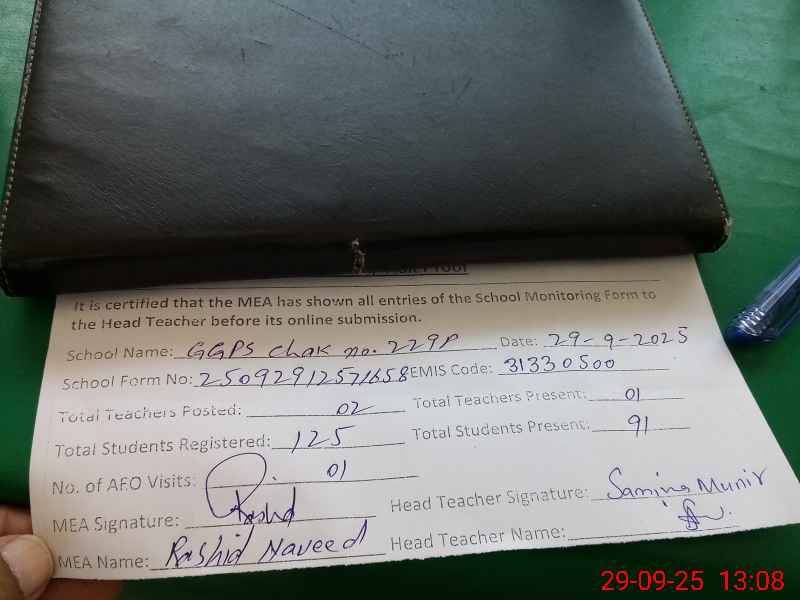 | Name: SA**** MU**** Designation: (School Headmaster's/Headmistress's) PST/PTC/JV Phone/Cell Number: 03**** |