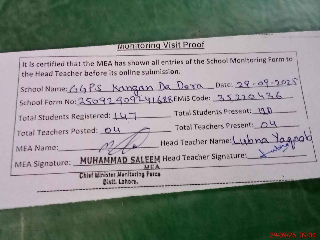 | EMIS Code: 35220436 | Name of School: GGPS KANGA DA DERA | |||
