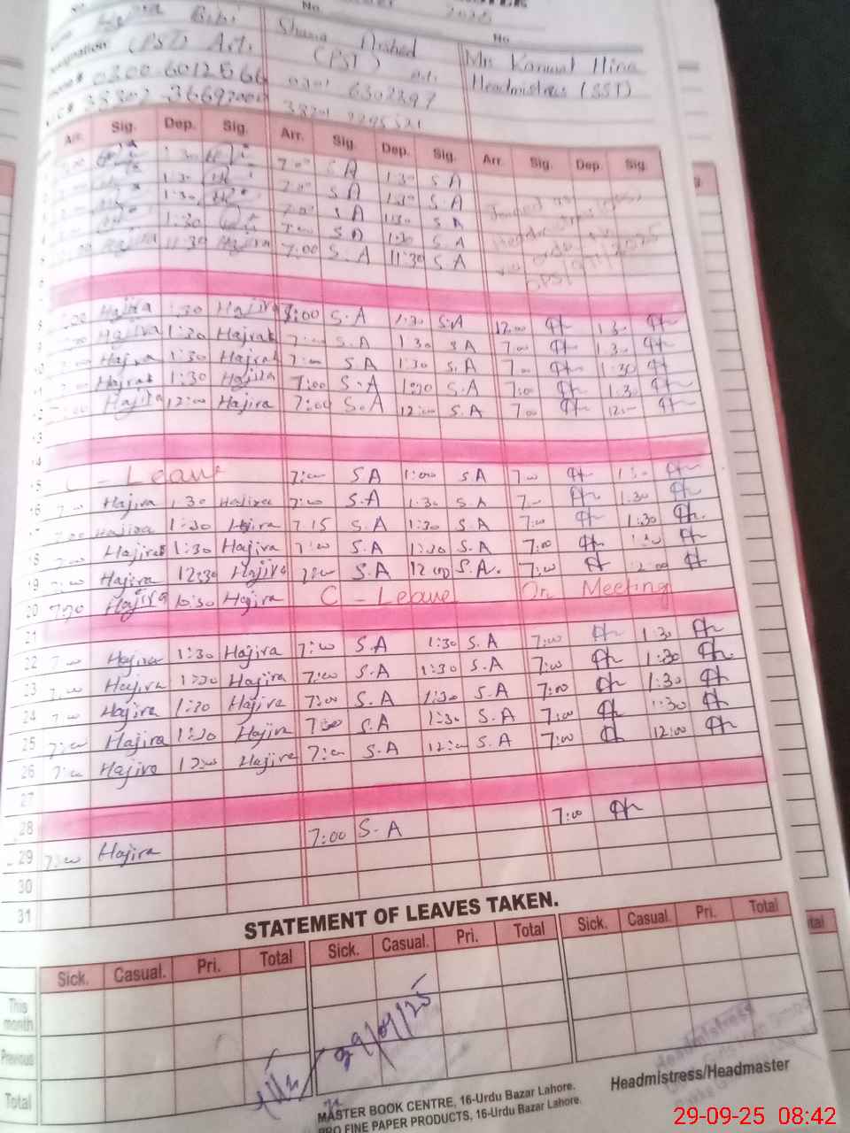| Name: SA**** SU**** Designation: (School Headmaster's/Headmistress's) S.S.T.(GEN) Phone/Cell Number: 03**** |