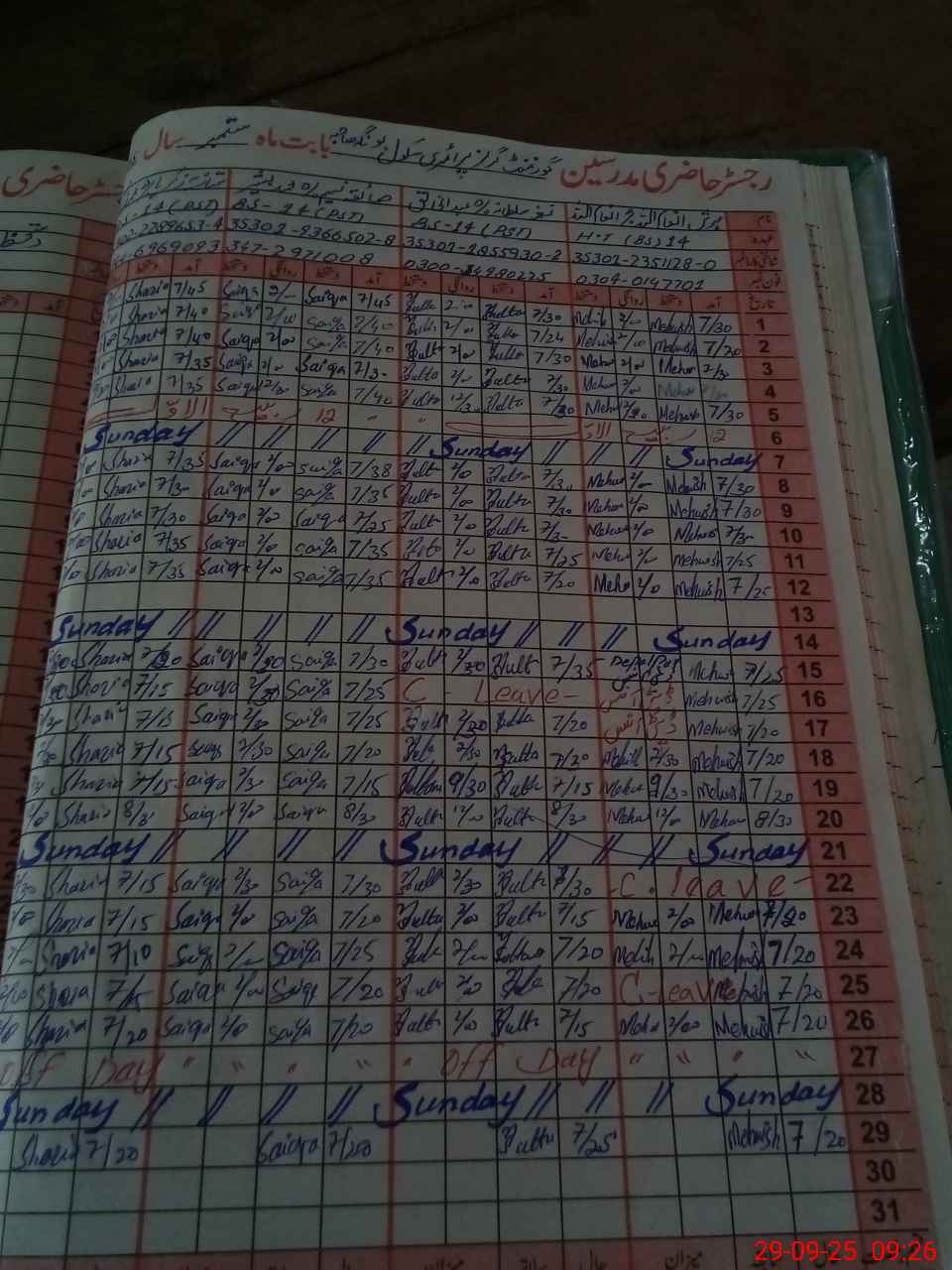 | CNIC | Full Name | Designation | R/C | Absence During Last Calender Month |