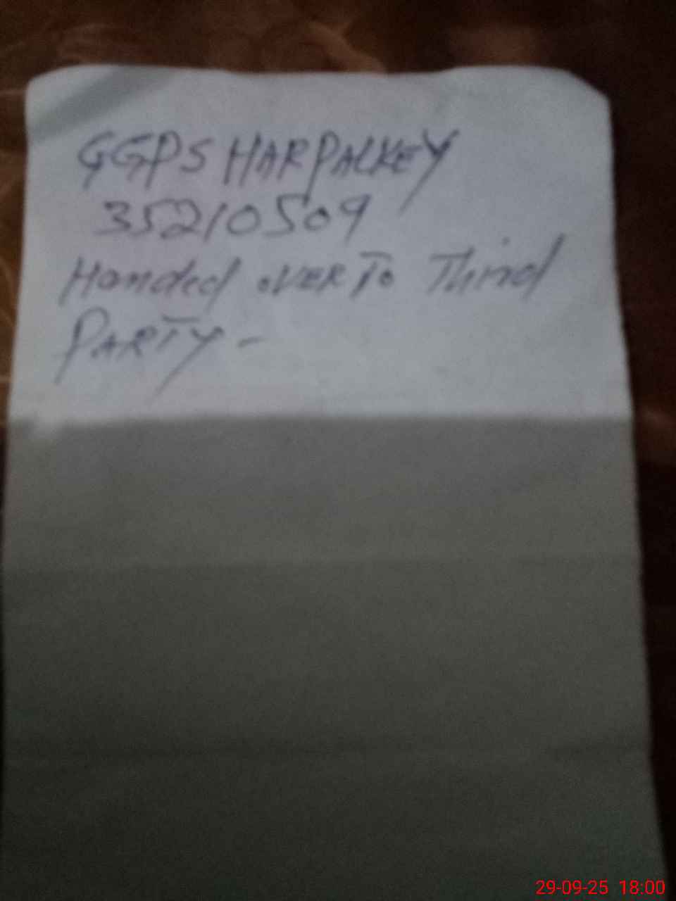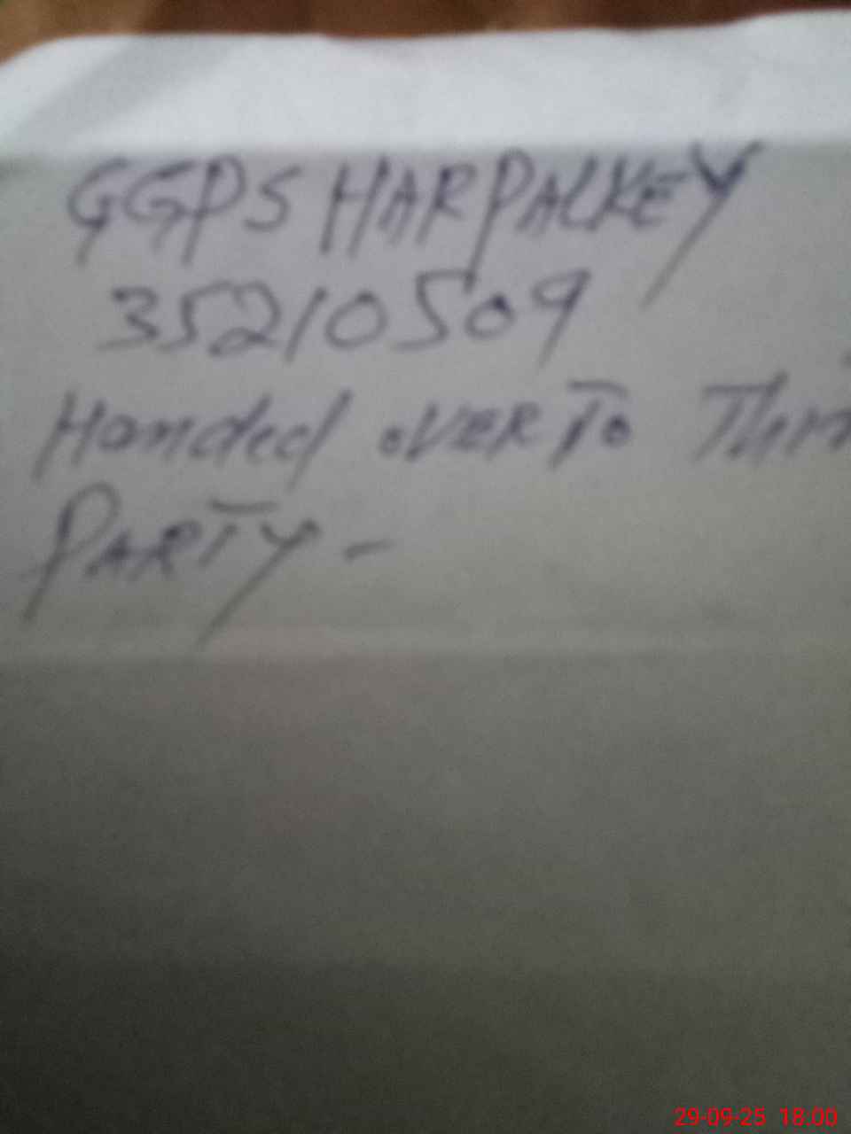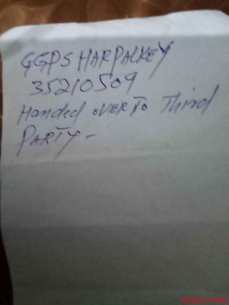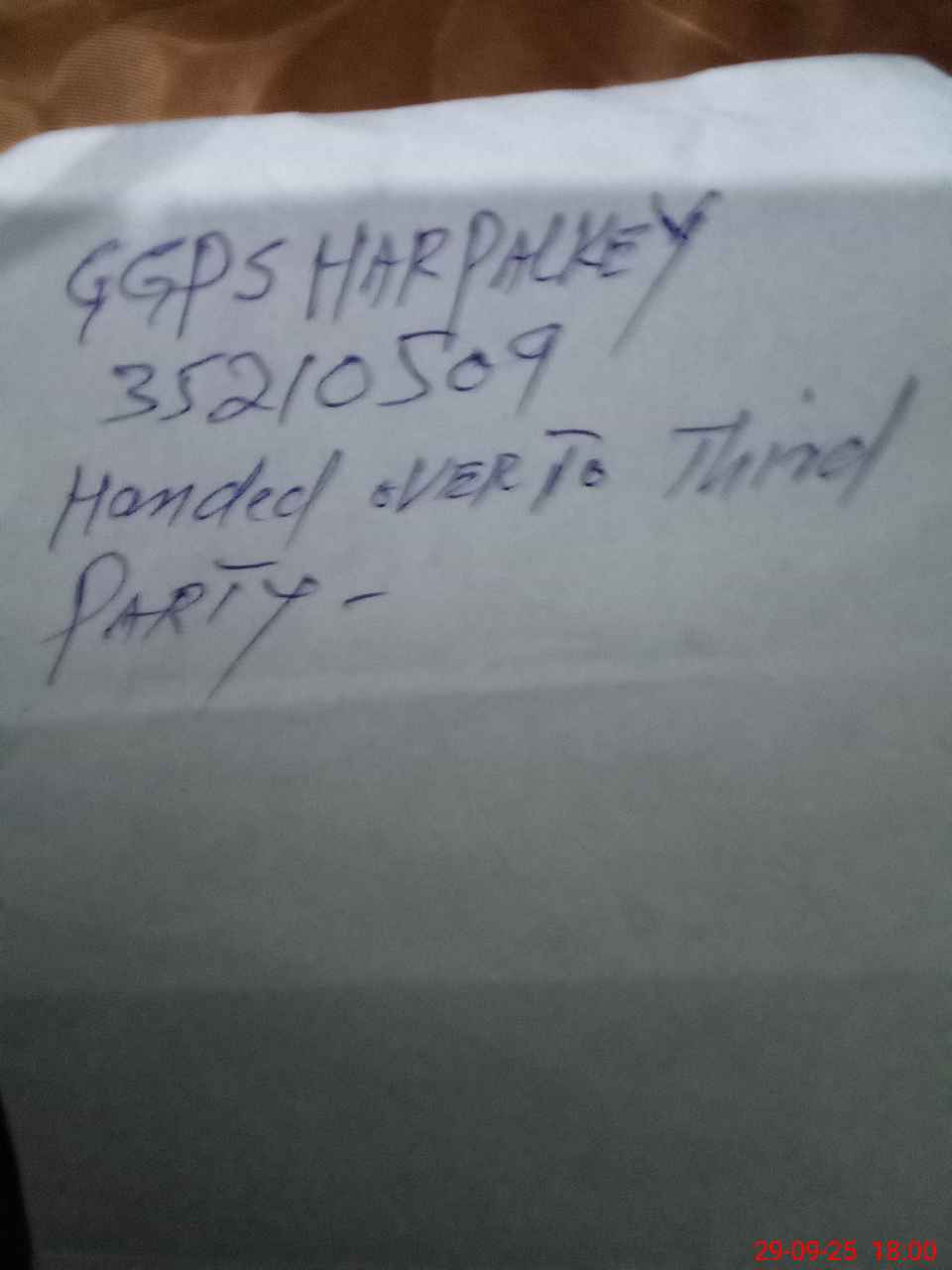 | Remarks (Use Separate Page if Required): GGPS HARPALKEY Emis Code 35210509 handed over to third party | |||||