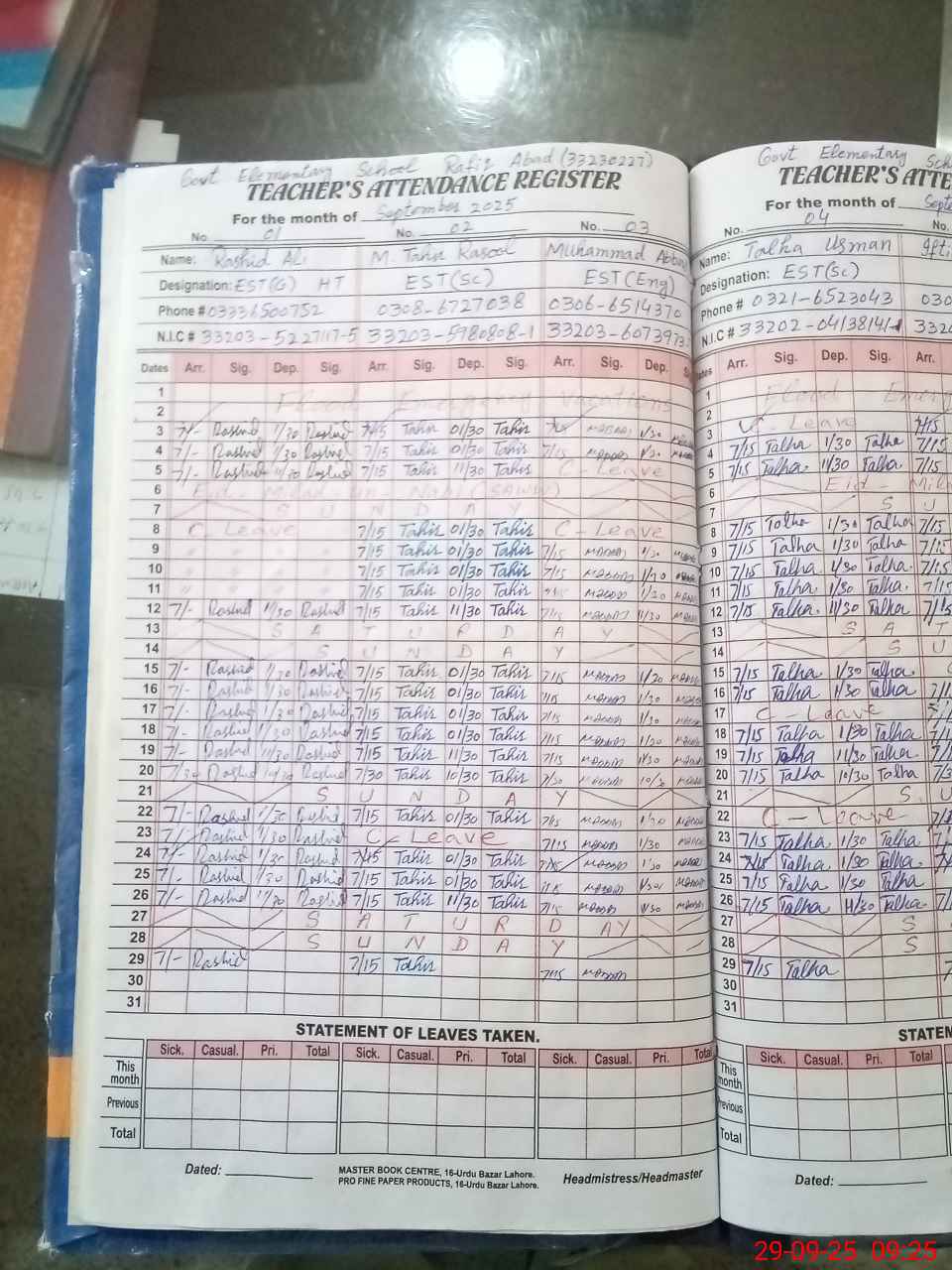 | Name: Ra**** Al**** Designation: (School Headmaster's/Headmistress's) EST Phone/Cell Number: 03**** |