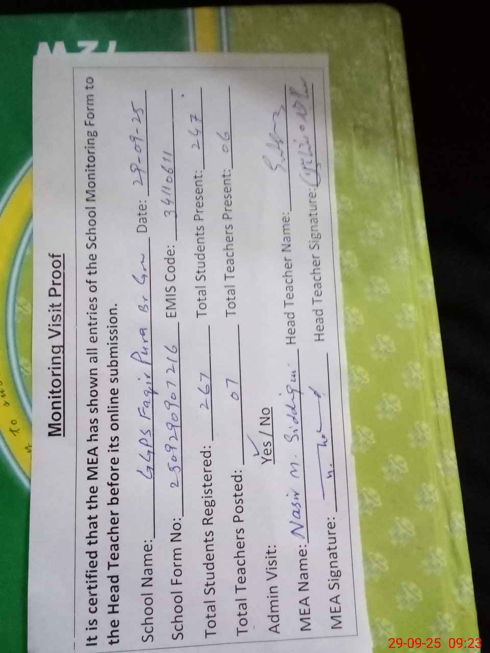 | EMIS Code: 34110611 | Name of School: GGPS FAQIR PURA BRANCH | |||