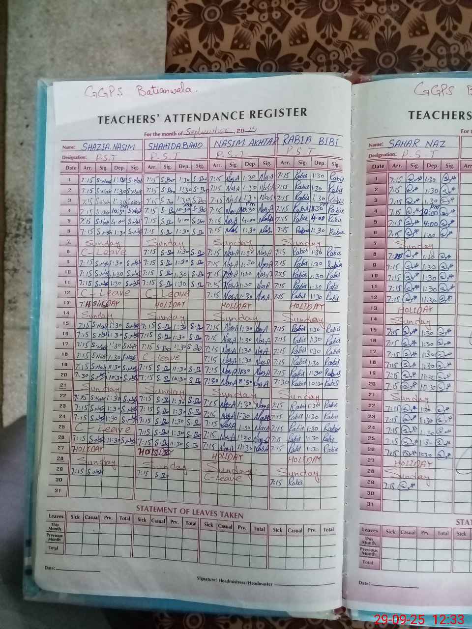 | Name: SH**** NA**** Designation: (School Headmaster's/Headmistress's) PST Phone/Cell Number: 03**** |