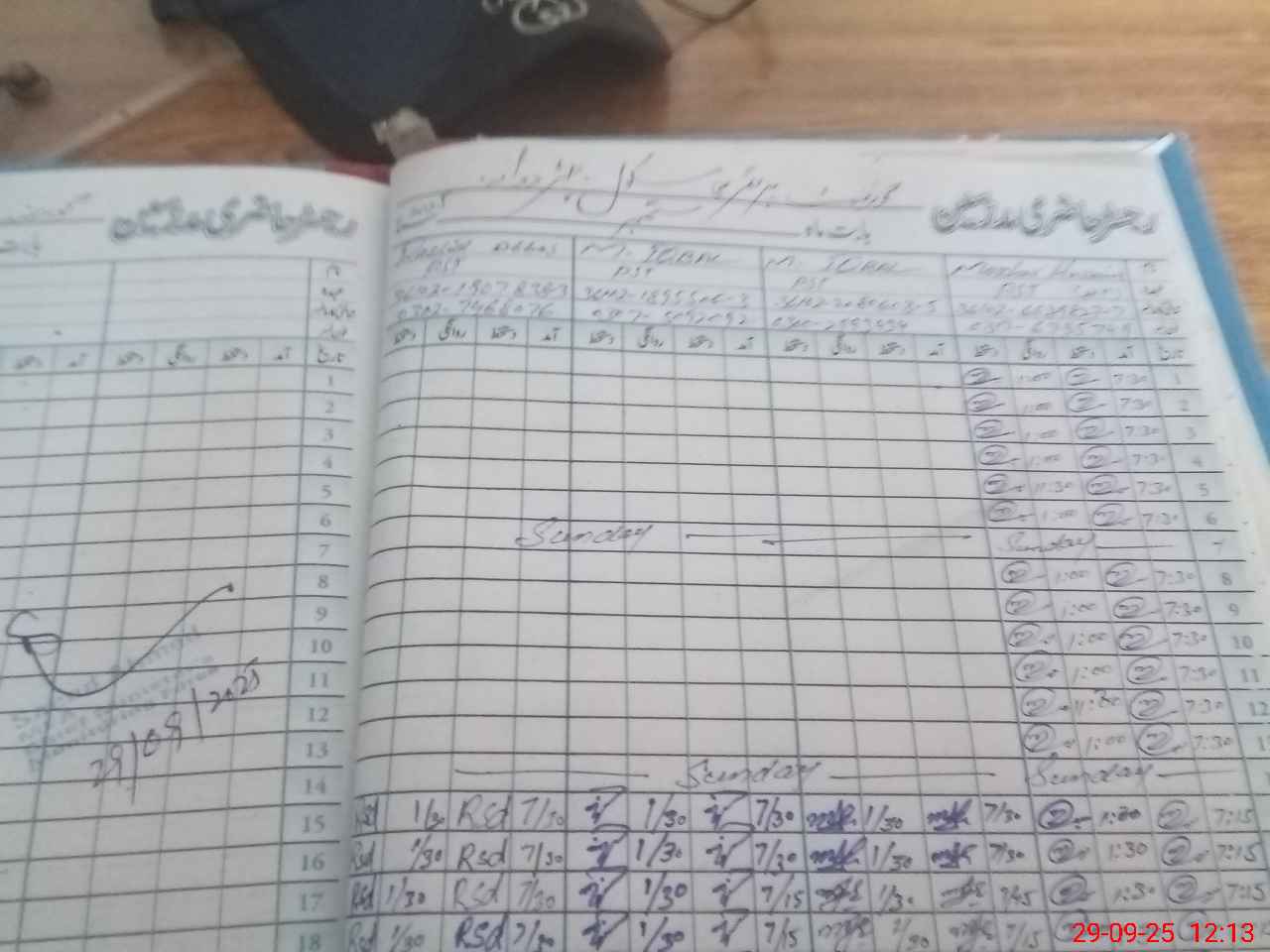 | CNIC | Full Name | Designation | R/C | Absence during last cal. month |