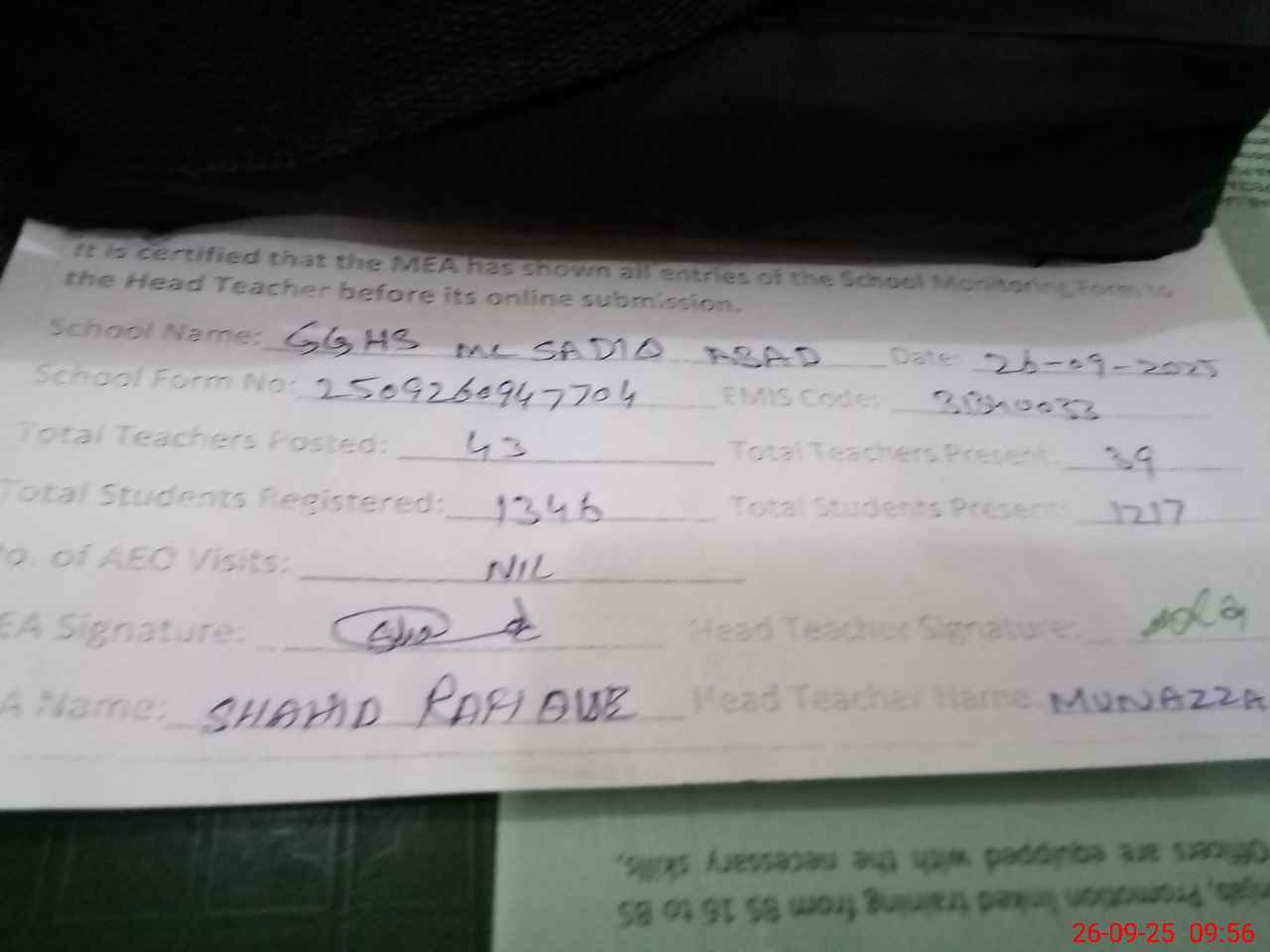 | Certified that this School was Inspected by the Undersigned MEA/DMO Today and the Information Stated Above is as Per Record. | |||||