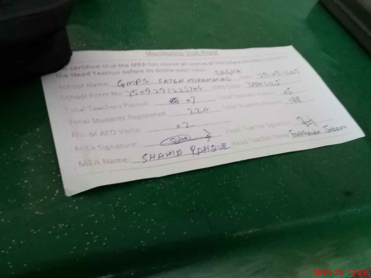 | Certified that this School was Inspected by the Undersigned MEA/DMO Today and the Information Stated Above is as Per Record. | |||||
