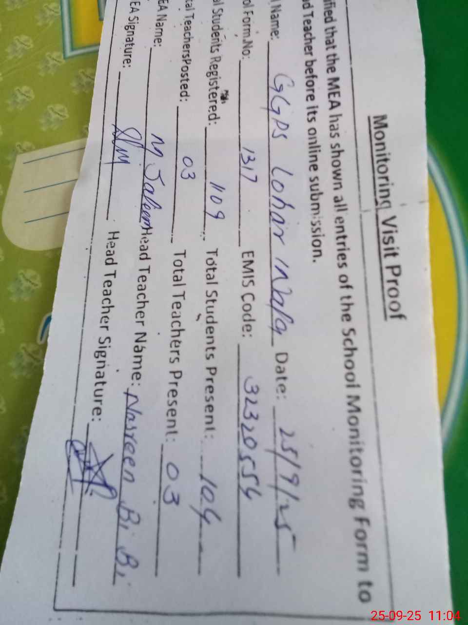 | EMIS Code: 32320554 | Name of School: GGPS LOHAR WALA | |||
