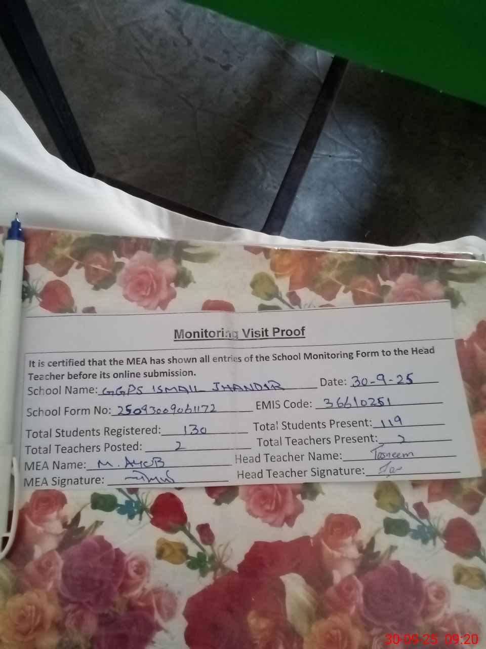 | EMIS Code: 36610251 | Name of School: GGPS ISMAIL JHANDEER | |||