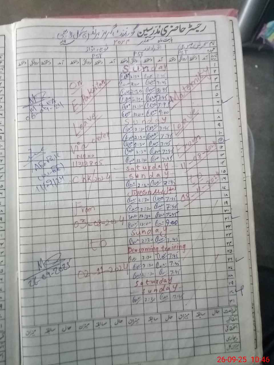 | Leave | Duty | Absent | Maternity | Medical | Ex- Pak |