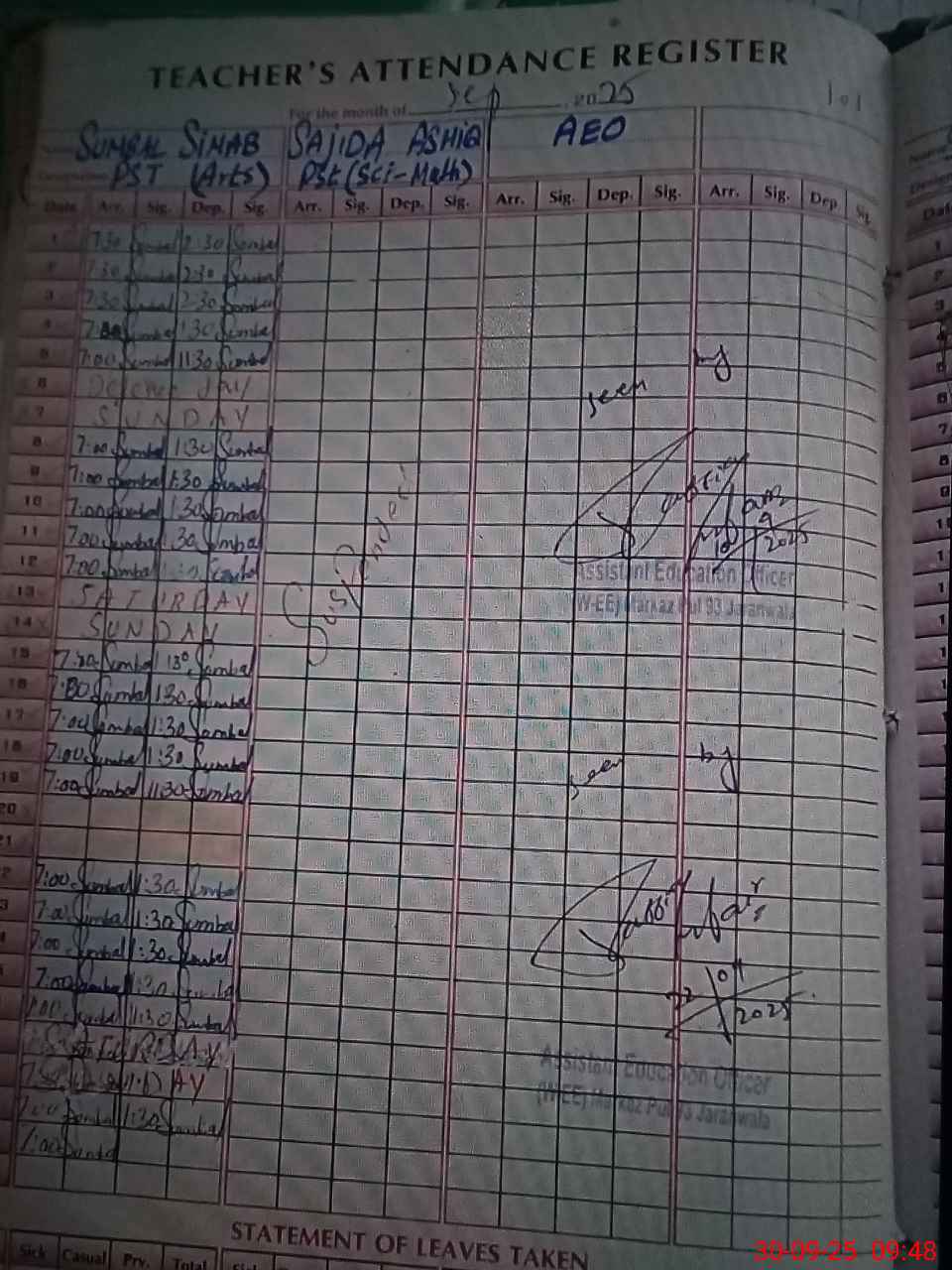 | Name: SU**** SI**** Designation: (School Headmaster's/Headmistress's) PST Phone/Cell Number: 03**** |