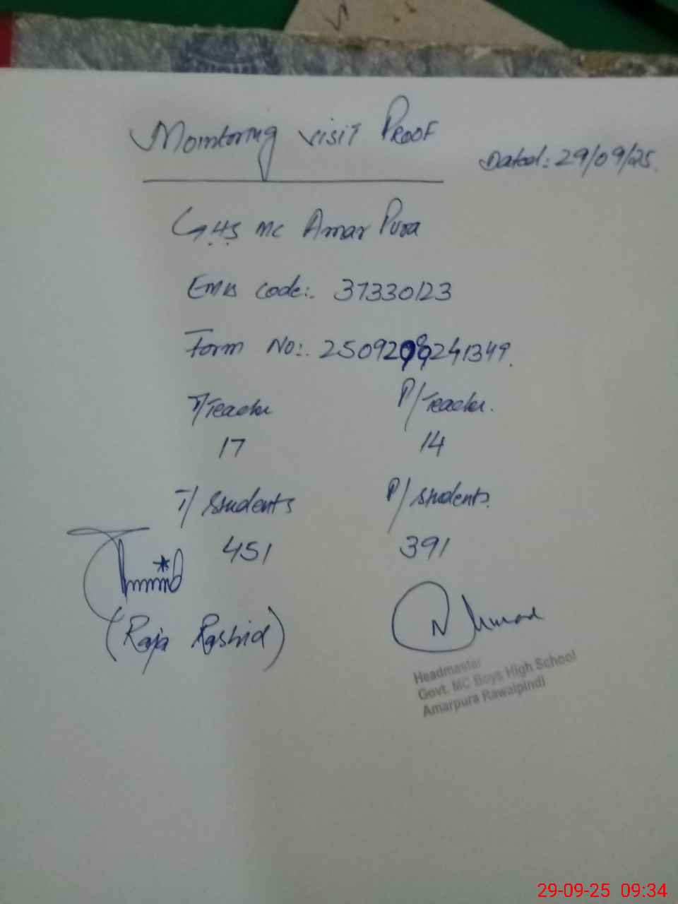 | EMIS Code: 37330123 | Name of School: GHS MC AMAR PURA RAWALPINDI | |||