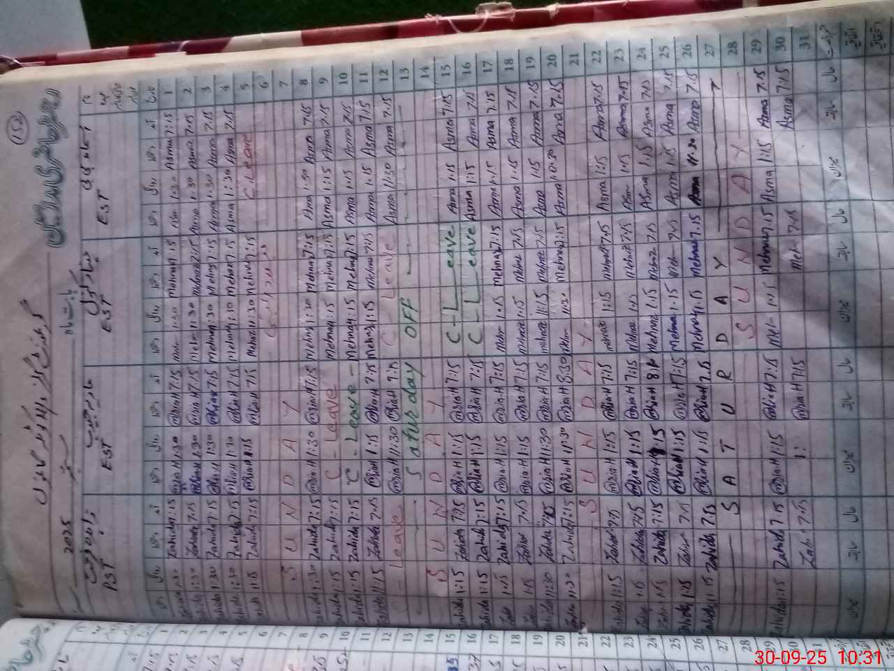 | Leave | Duty | Absent | Maternity | Medical | Ex- Pak |