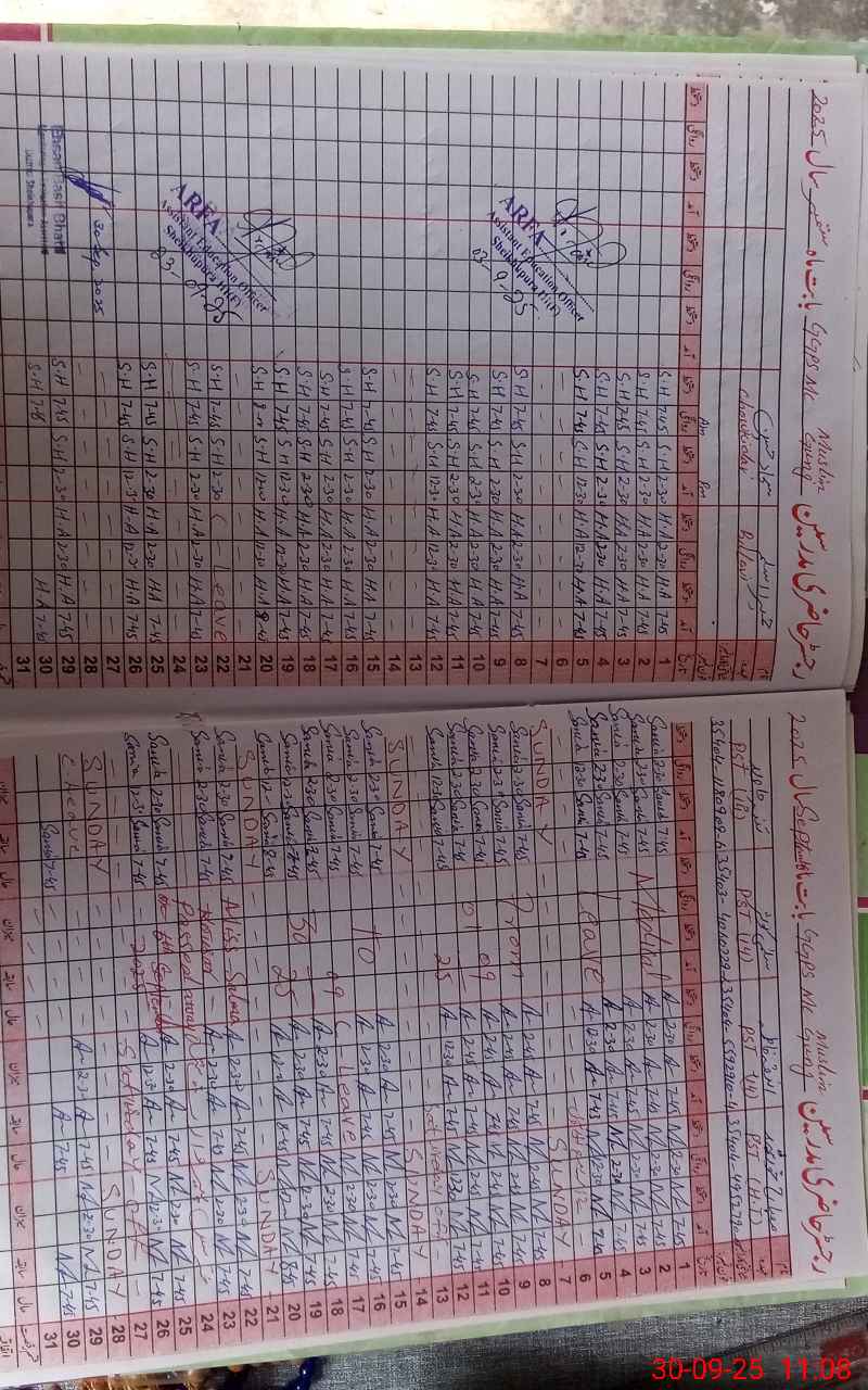 | CNIC | Full Name | Designation | R/C | Absence During Last Calender Month |
