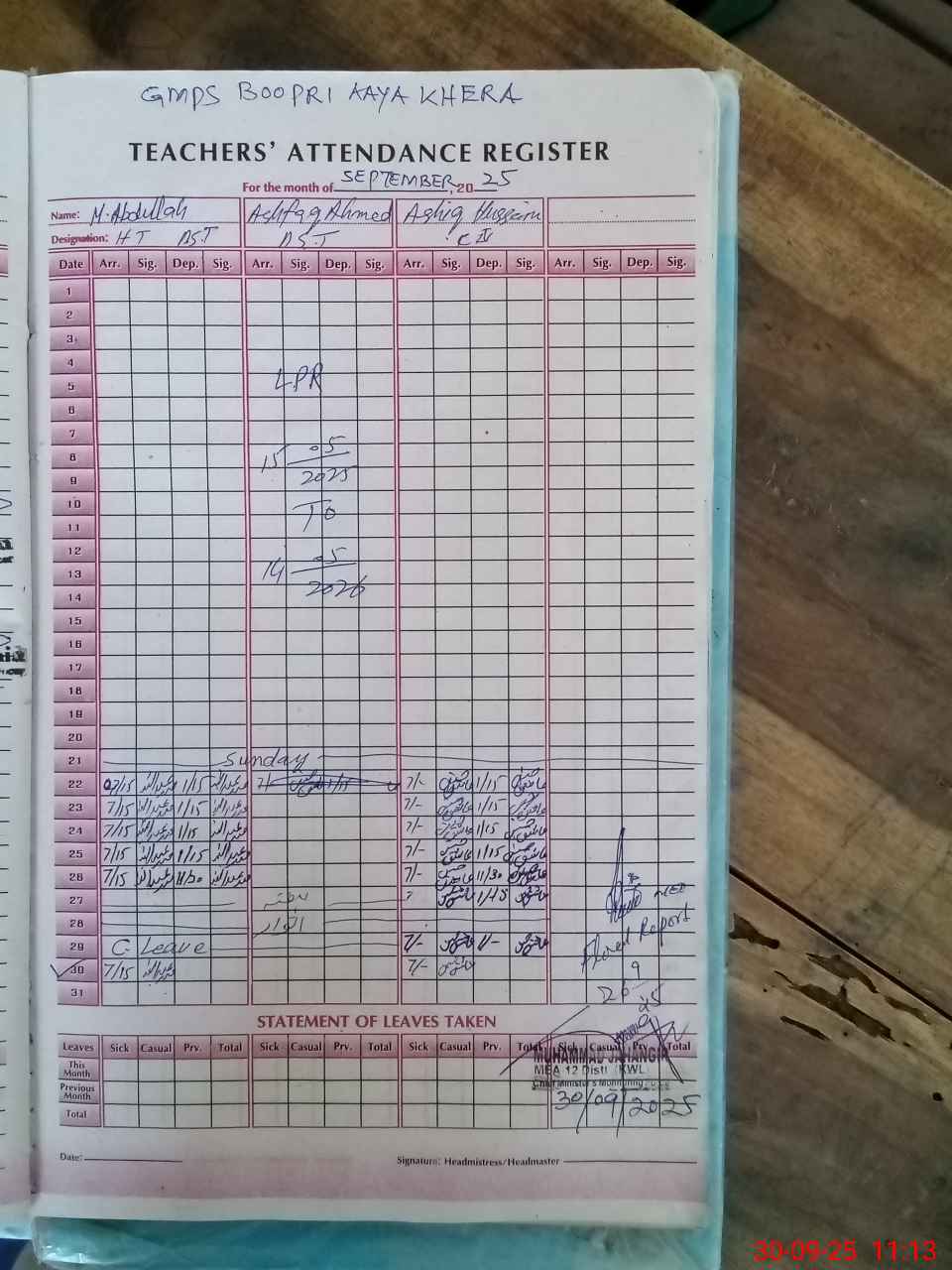 | Name: MAb**** Designation: (School Headmaster's/Headmistress's) PST Phone/Cell Number: 03**** |
