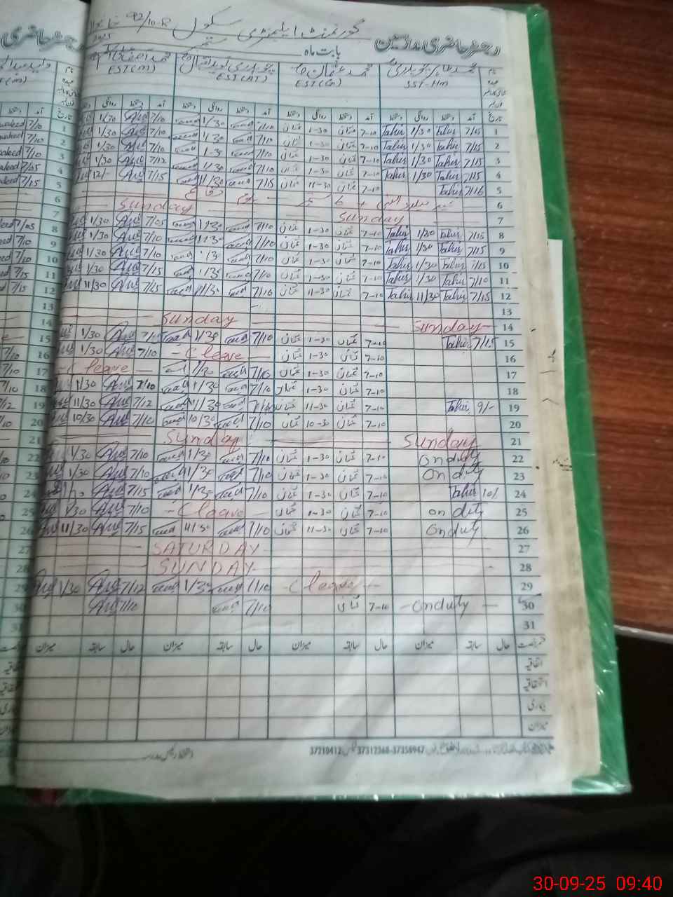 | Leave | Duty | Absent | Maternity | Medical | Ex- Pak |