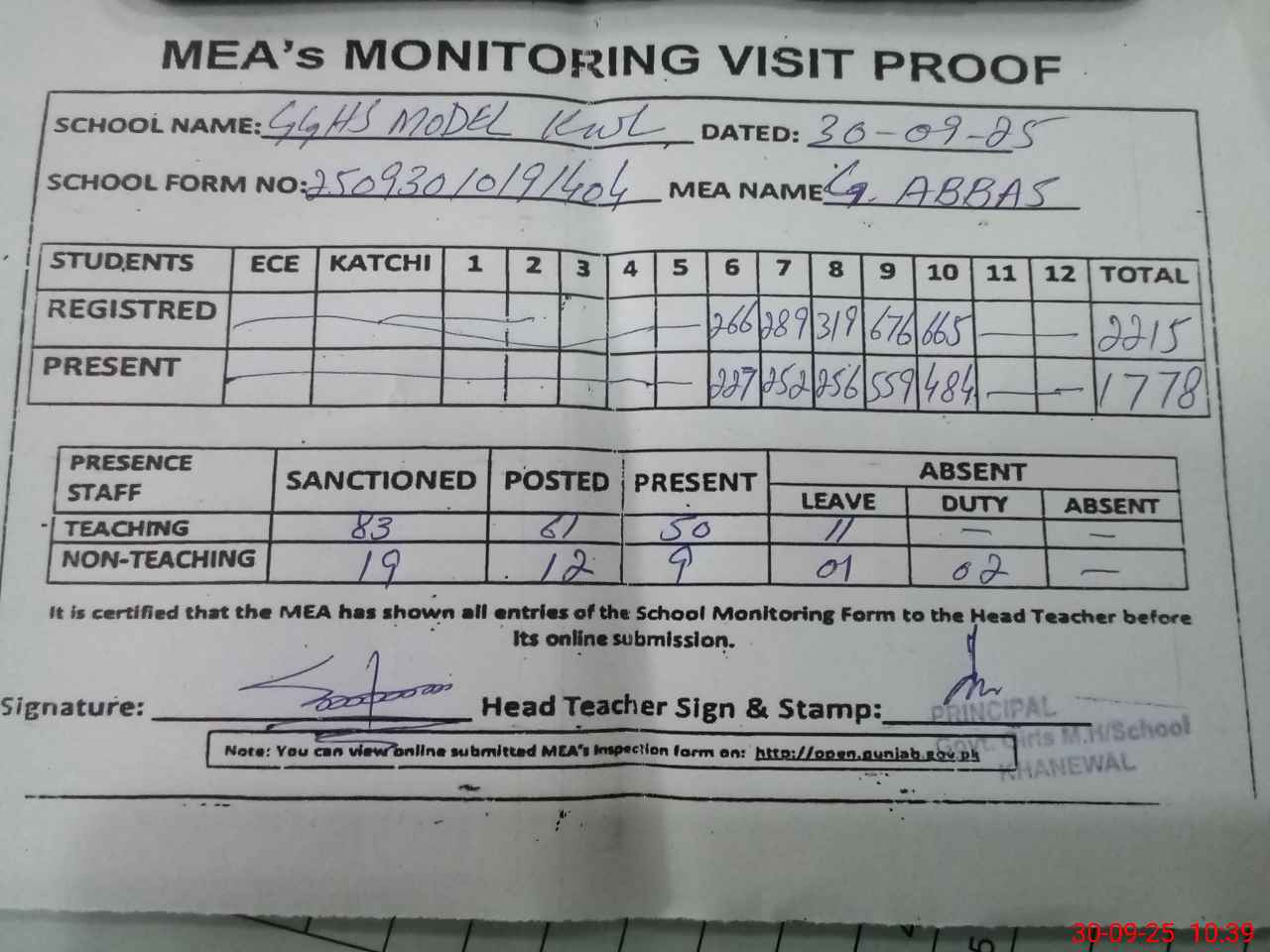 | EMIS Code: 36420044 | Name of School: GGHS MODEL KHANEWAL, BLOCK NO.4 LINE 3, KHANEWAL | |||